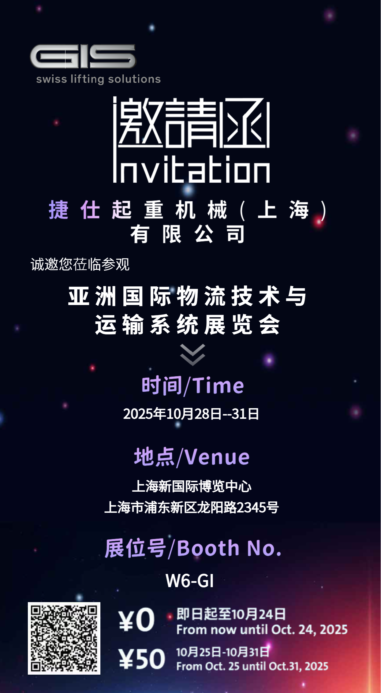 為方便專業(yè)觀眾參與,即日起至2025年10月24日,可通過官方渠道掃碼免費領取門票。10月25日起,展會門票將恢復至50元/張。觀眾可前往上海新國際博覽中心(浦東新區(qū)龍陽路2345號)W6館G1展位,體驗捷仕GIS的尖端技術魅力。